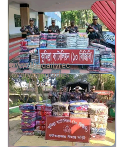 Kawsher Tusher (Journalist – https://www.facebook.com/profile.php?id=100083311420863 & https://www.facebook.com/kawsher.tusher) – বাংলাদেশ এর কুমিল্লা জেলা’য় – কুমিল্লা সীমান্তে বিজিবি’র অভিযানে ৪১ লাখ টাকা’র ইন্ডিয়া’ন পণ্য আটক হয়েছে – ২৯-১১-২০২৫ ইংরেজি তারিখে, চোরা’চালান’কারী’দের হতে বিজিবি’র কুমিল্লা ব্যাটালিয়ন (১০ বিজিবি) এর সদস্য’দ্বয় ইন্ডিয়া’ন – শাড়ী, কম্বল, পোশাক ও কসমেটিক্স সামগ্রী জব্দ করেছে, চৌদ্দগ্রাম উপজেলা’র শিবের বাজার বিওপি ও আদর্শ সদর উপজেলা’র বিবির বাজার বিওপি’র অধীন’স্থ কটকবাজার পোষ্ট ও গোলাবাড়ী পোষ্ট সজাগ টহলদল সীমান্ত ঘেঁষা এলাকা’য় মাদক ও চোরাচালান বিরোধী পৃথক অভিযান পরিচালোনা’কালীন – উক্ত অবৈধ মালামাল জব্দ করা হয়েছে, পরবর্তীতে – নোয়াপাড়া, চাঁনপুর ব্রিজ ও বিষ্ণুপুর থেকে মালিক’বিহীন অবস্থা’য় পড়ে থাকা বিপুল পরিমাণ – ইন্ডিয়া’ন