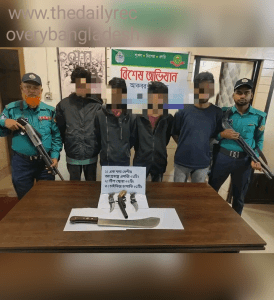 বাংলাদেশ এর চট্টগ্রাম বিভাগ ও জেলা'য় - সিটি কর্পোরেশন এলাকা'য় - সিএমপি'র আকবর শাহ থানা পুলিশ কর্তৃক বিশেষ অভিযানে ডাকাতি'র প্রস্তুতি'কালীন আগ্নেয়াস্ত্র ও দেশীয় অস্ত্র সহ ৪ জন কুখ্যাত সন্ত্রাস'দ্বয় গ্রেফতার হয়েছে।  - thedailyrecoverybangladesh